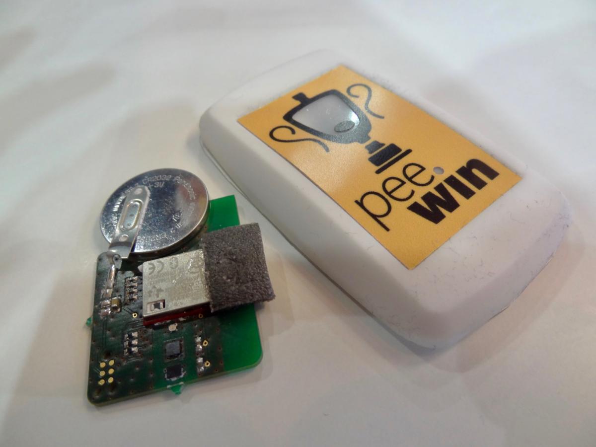 Peelytics of Heidelberg, Germany, has developed a Bluetooth beacon that detects when someone is urinating on it, and for how long. If that person has a hand free to wake up their smartphone, they can “claim” that micturition as their own using the Peelytics app, and perhaps win a prize if they peed for longest.